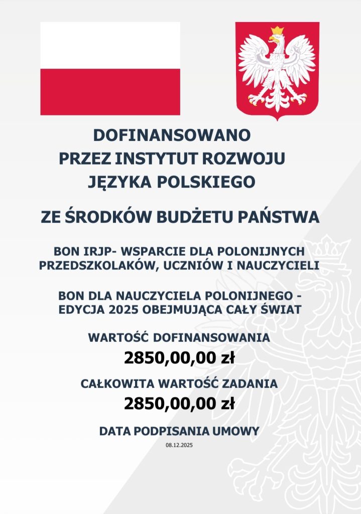 Nauczyciele naszej szkoły wzięli udział w programie „Bon dla nauczyciela polonijnego 2025” i uzyskali dofinansowanie w ramach tego programu.